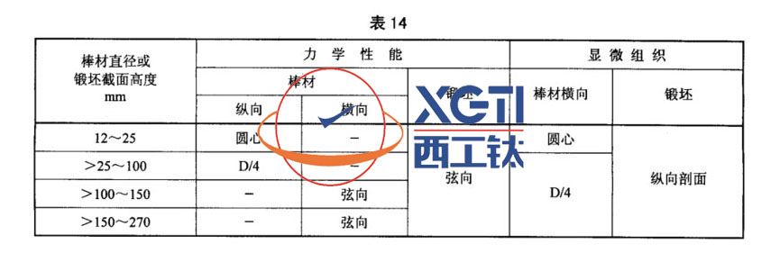 當(dāng)用同一鑄錠采用相近工藝,同時(shí)生產(chǎn)幾種規(guī)格相近的鍛坯時(shí),訂購(gòu)方同意并在合同中注明時(shí),允許用最大規(guī)格鍛坯的性能和組織的檢驗(yàn)結(jié)果代表其他規(guī)格鍛坯的檢驗(yàn)。